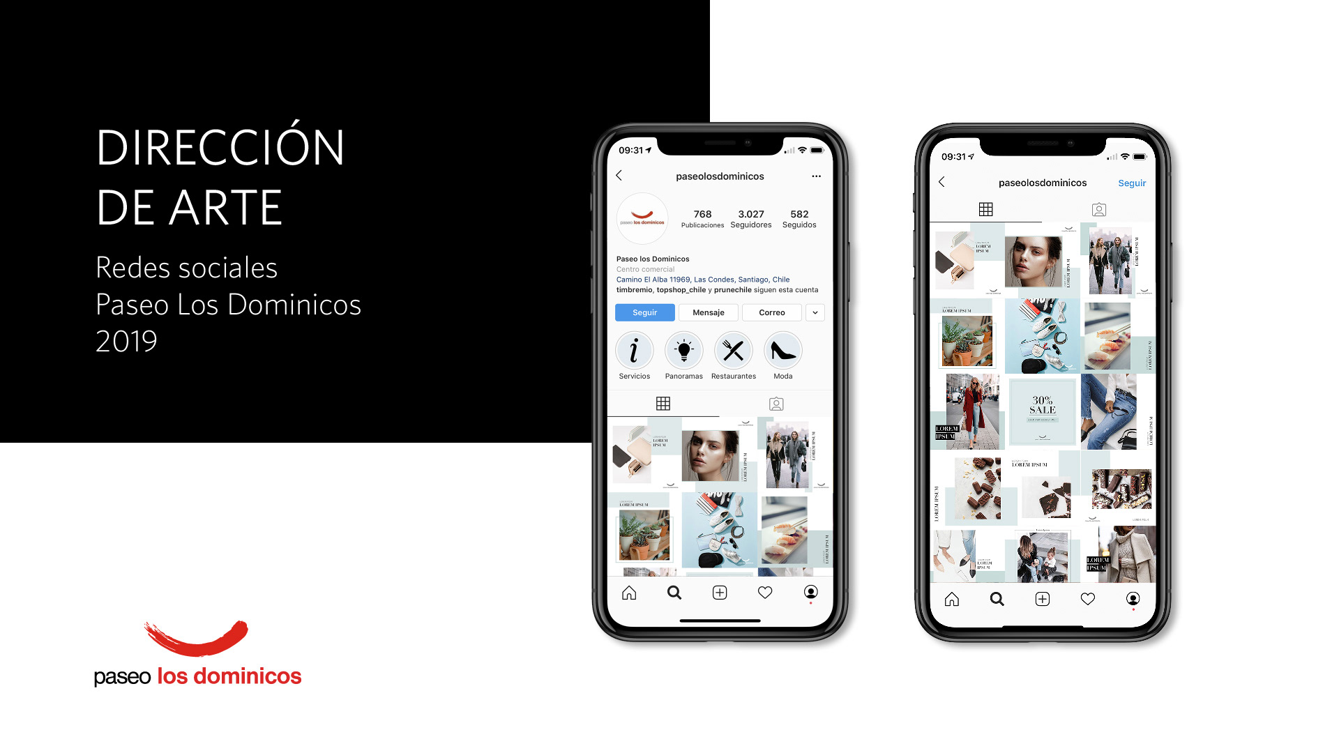 Desarrollo de dirección gráfica para rediseño de las redes sociales del centro comercial Paseo Los Dominicos, basado en el publico objetivo y reflejando la sobriedad, elegancia y feminidad que la marca desea mostrar.