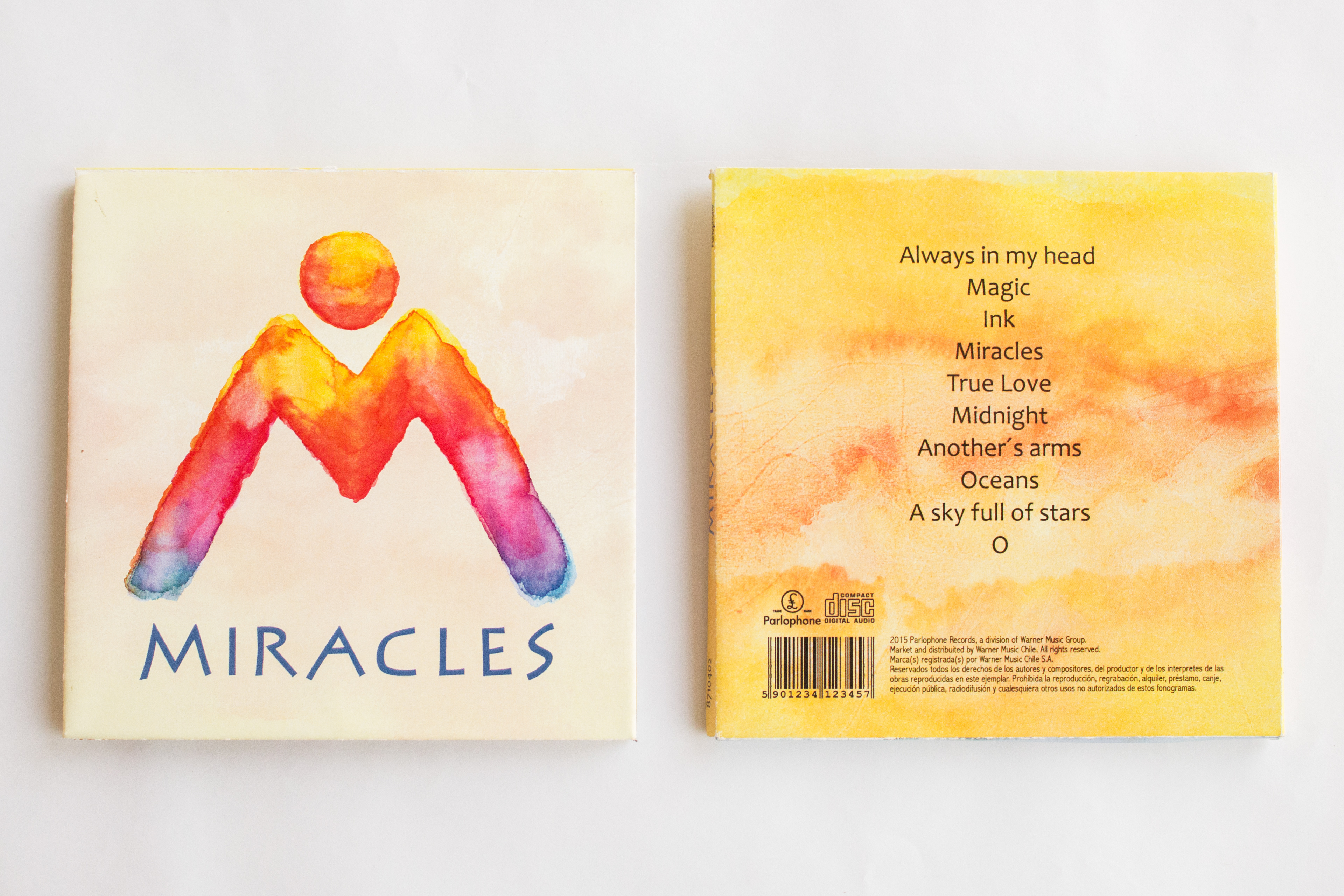 Proyecto académico para Taller de Branding y posicionamiento. Diseño de Album musical que transmita los conceptos de una canción de un CD ya existente, en el caso es Miracles, canción de Coldplay.